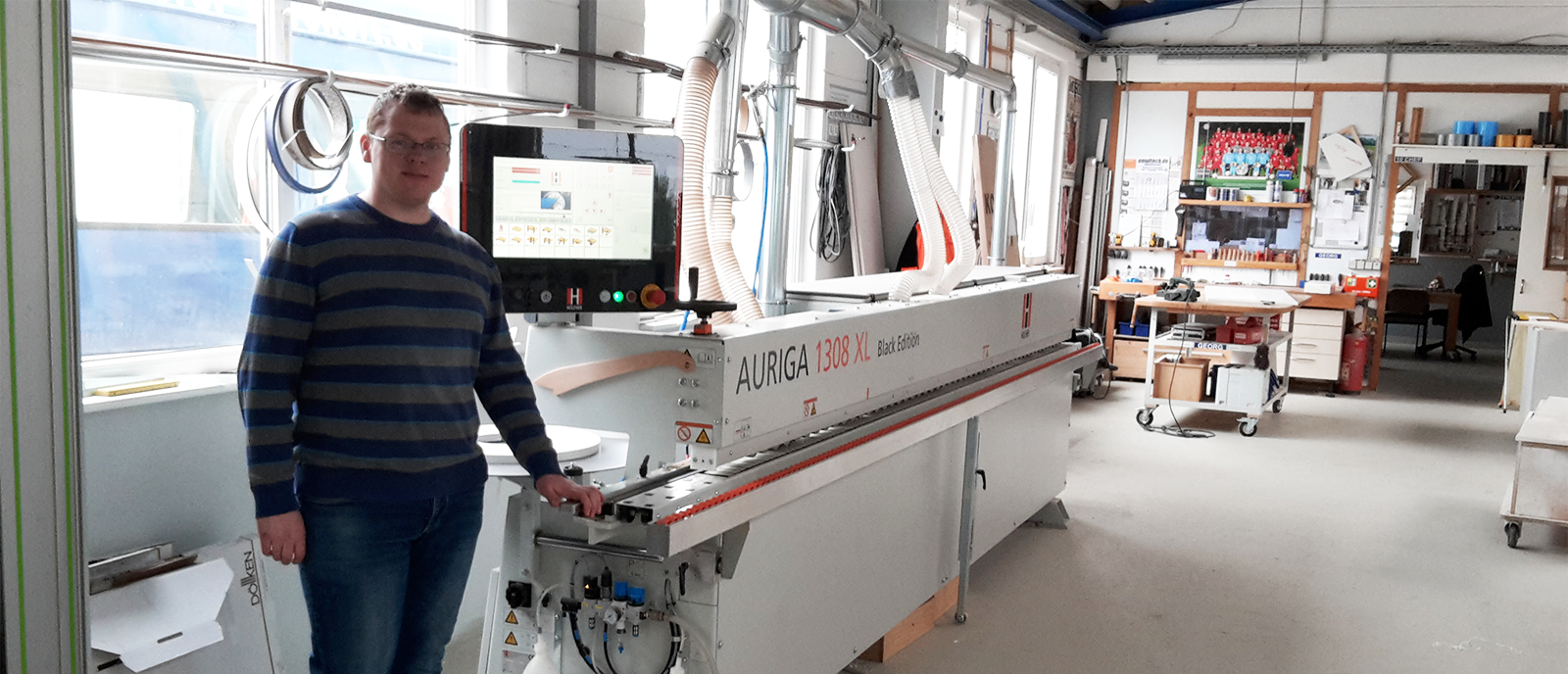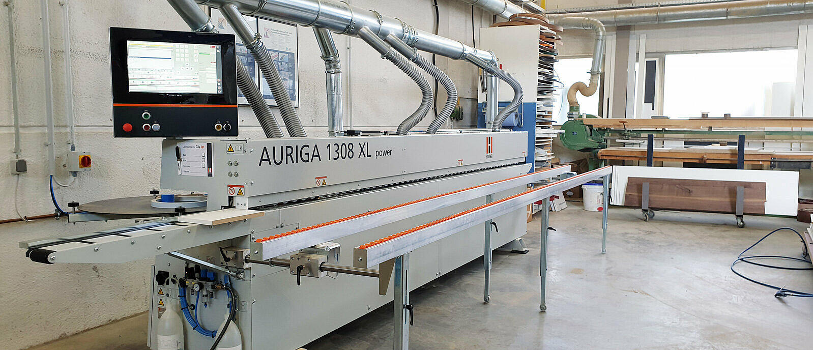 Um eine einwandfreie Umsetzung zu gewährleisten, werden bei der Schreinerei Marten Maschinen auf höchstem technologischen Niveau eingesetzt. In die Fertigung ist die Kantenanleimmaschine AURIGA 1308 XL von HOLZ-HER eingegliedert, um den steigenden Kundenanforderungen an eine hochwertige Kantenqualität gerecht zu werden und schnell reagieren zu können.