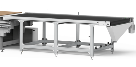An integrated motorized outfeed conveyor smoothly removes finished parts from the working area, reducing manual handling and increasing productivity. The conveyor is designed for scratch-free, damage-free part transport, ready for downstream operations or immediate packing.